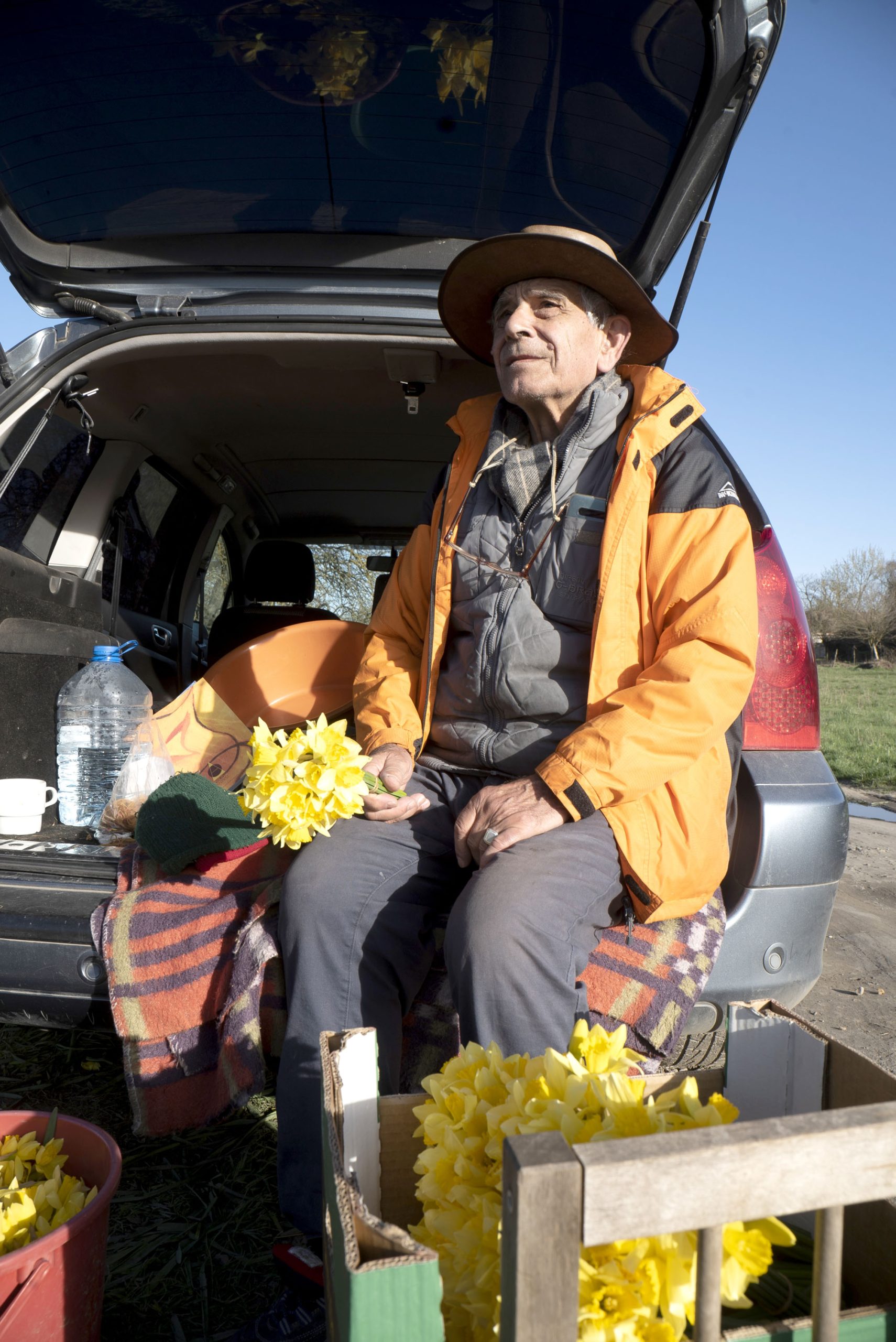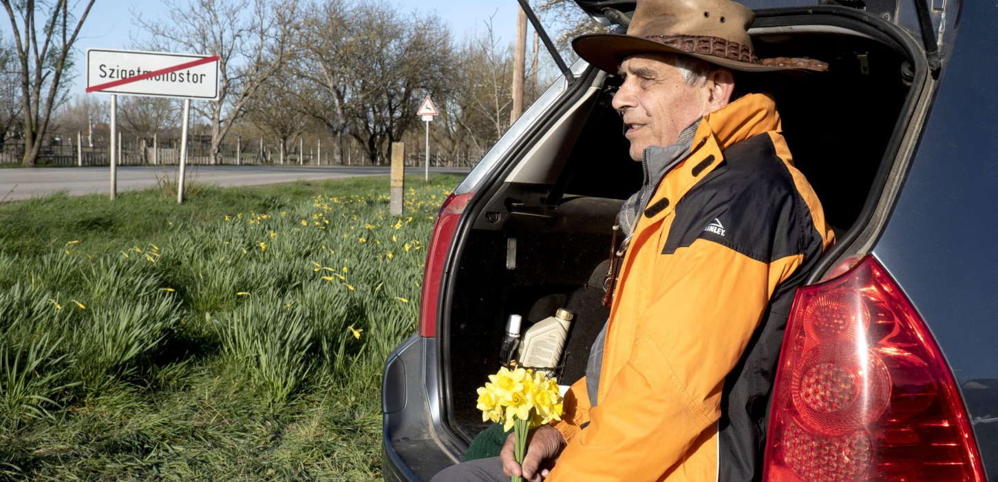Közben csak sikerült nyugdíjba mennem. Úgy tíz évvel ezelőtt arra lettem figyelmes, hogy van itt ez a szép nárciszmező. A föld nem az enyém, hanem a helyi iskola igazgatónőjéé. Náluk az egész család allergiás a virágporra, így nem akartak vele foglalkozni. A virágokat még az ő édesanyja ültette. Amikor nyílnak a virágok, gátlástalanul szed belőle, aki akar. Volt, hogy úgy lopták, hogy megállt 4-5 kocsi és kaszálták. Akkor megkerestem Julikát, a tulajdonost és megállapodtunk, hogy rendet csinálok. Rögtön egymás tenyerébe csaptunk, és megosztottuk a bevételt. Nekem ez szórakozás. Imádom a virágokat. Beszélgetek velük, amikor ott vagyok. Csak az a baj, hogy ez a virágmező lassan százéves, és lassan elöregszik. Fel kellene újítani. Megvan ennek is a technikája, a gumókat fel kellene ekével hozni, szétválogatni, levédeni rovarirtószerrel, egész télen pincében tárolni, és a rákövetkező év tavaszán megművelni a telket, feltárcsázni és újraültetni. Addig is minden évben, amikor virágzik a nárcisz, reggeltől estig itt vagyok. Vigyázom, őrzöm.