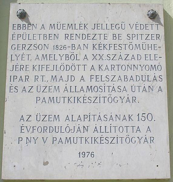 A mai Lajos utca 102/b. sz. alatt 1826-ban a Spitzer Gerzson által alapított kékfestő-manufaktúra jelentette az alapokat. A műhely egyre jobban fejlődött, azonban az 1838-as dunai árvíz szinte elpusztította a vállalkozást.